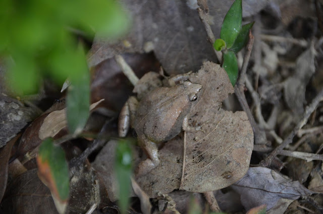 牠的身體特徵非常明顯(嘴巴是尖的,身體呈三角形,而且圓滾滾的),一看就知道牠屬於狹口蛙科的蛙類,查過資料後,確認牠是小雨蛙。
